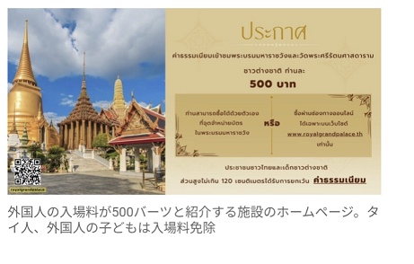 ããäžã€ã®çã¯å€åœäººã«å¯Ÿã芳å çš(å ¥åœçšå ¥å³¶çšãªã©)ãããã、åçš®æœèšå©çšæãå²é«ã®å€åœäººæéãèšãã。JRã®å€åœäººéå®ã®å²åŒãã¹ã¯æ¥æ¬åœæ°ã¯è²·ããªãã£ã、å€åœäººã ããå ¥å Žæç¡æã®å ¬å ±æœèš(å¥è¯çç«çŸè¡é€šç)ãããã、æ¥æ¬äººå·®å¥ãšããå£°ã¯æãã£ãŠããªã。å€åœäººãåªå ããåœãªã©ã©ãã«ããªã、æ¥æ¬ã¯ããŸãã«ãã人奜ãéãã、æ¬æ¥ã¯å€åœäººæéã®æ¹ãå²é«ã«ãã¹ãã§ãã。*ã¿ã€ã¯ããããŒã®æèгæã¯å€åœäººã¯300B(çŽ1250å)ã§ã¿ã€äººã¯ç¡æã§ãã、ã€ã³ãã¿ãŒãžããã«ã¯å€åœäºº1300R(çŽ2370å)、ã€ã³ã人ã¯245R、ã€ã³ã人ã«ãã®çç±ãèããš 「æŽå²éºç£å«ãå ¬å ±ã€ã³ãã©ã¯、èªåãã¡ã®ç¥å ãç¯ããŠãã、ã¿ãŒãžããã«ãæ°çŸå¹Žéã¡ã³ããã³ã¹ãããŠä»ã«ãã、ããã¯äœäžä»£ã«ãããç¥å ã«ããè²¢ç®ã«ãããã®ã§ãã®åå«ããã®ã¢ããã³ããŒãžã§èŠ³èŠ§ã§ããã®ã¯åœç¶、äœã®è²¢ç®ãããŠããªãå€åœäººãçŸåšå¿ èŠãšãããæœèšç¶æã®ããé«ãã®æéãæãã®ã¯åœç¶」 ãšè«ããã。æ¥æ¬äººã®ééã£ãå¹³ç䞻矩ã、ããã£ãŠäžå¹³çãåŒãèµ·ãããŠã。å€åœäººæéãããããšã§æ¥æ¬ãé¿ããå±€ããããªã、ãªãŒããŒããŒãªã¹ãã®åæžå¹æã«ãªã、ããã§ãæ¥æ¬ã«è¡ããããšãã人ã ãã«æ¥ãŠãããã°ããã®ã§ãã