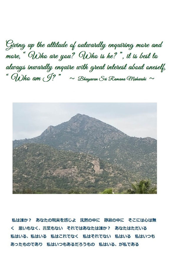 ãã®æ¹æ³ãšã¯、SELF ENQUIRY 「ç§ã¯èª°ã?」ãšããåããèªåã«ã€ãã€ããããšã§、ä»、ãã®ç¬é、ããã«ãã、ããªãèªèº«ã®æ¬æ§(çæ)ã«ç®èŠãã、ãšãããã®ã§ã。ã©ããã¯ãããã®ãããªå©ããçšããŸãã